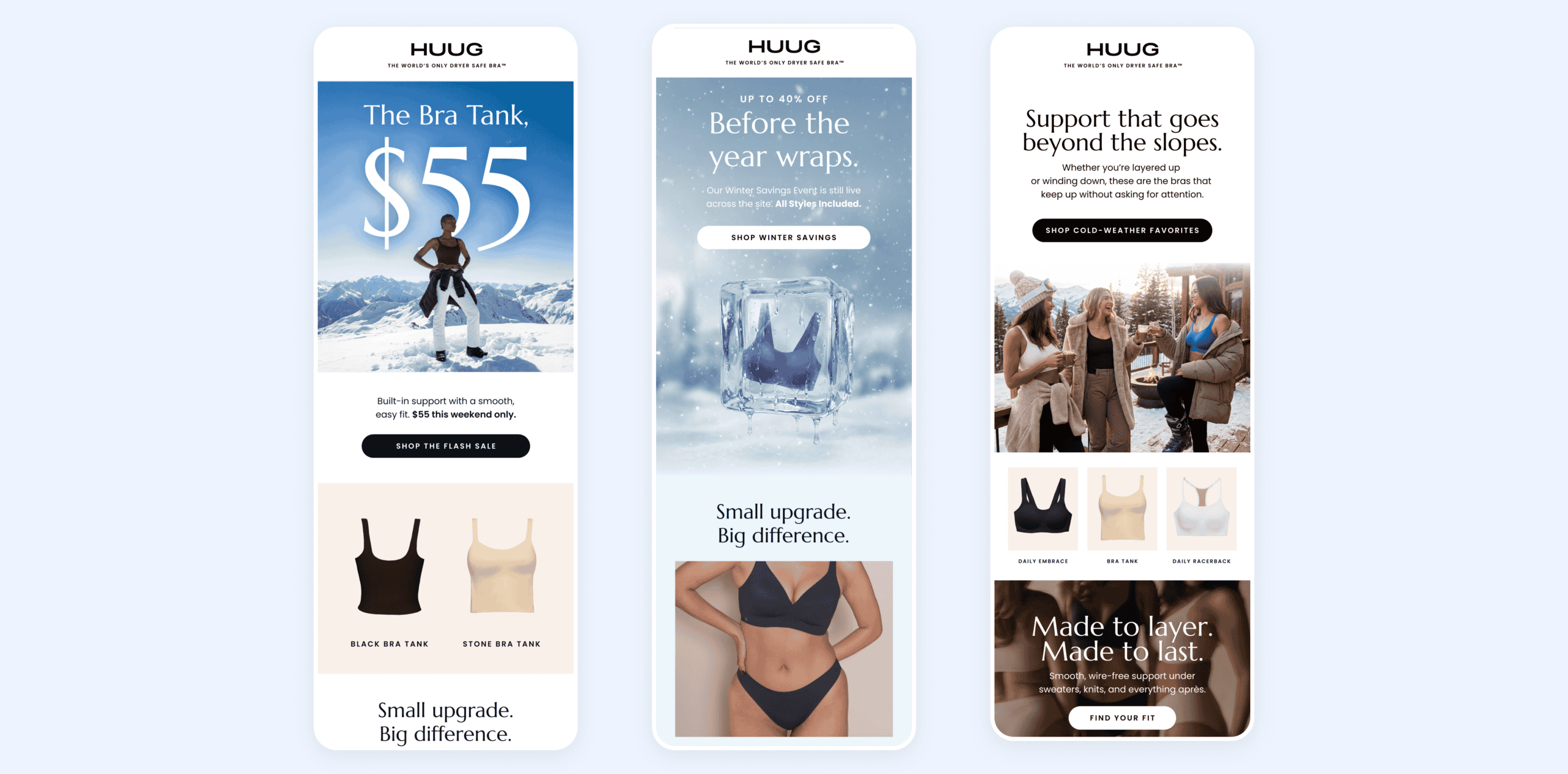 HUUG required a partner who could work across the full stack -- building out custom Shopify functionality, developing email flows that actually convert, and writing copy that sounds like the brand.