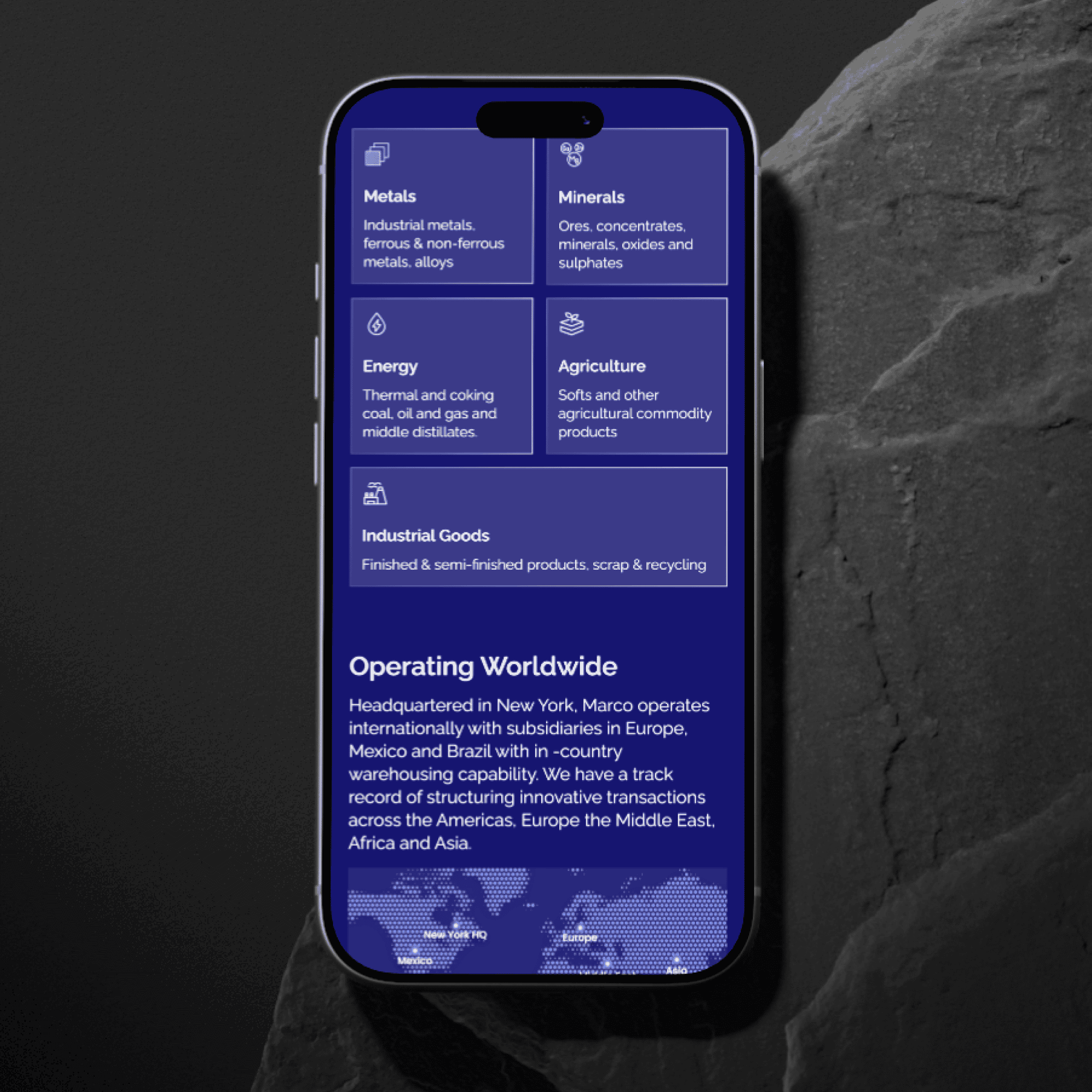 (About Project) Marco International is a New York-based metals, minerals, and raw materials trading and finance company with a global footprint spanning New York, Hong Kong, Istanbul, and beyond.