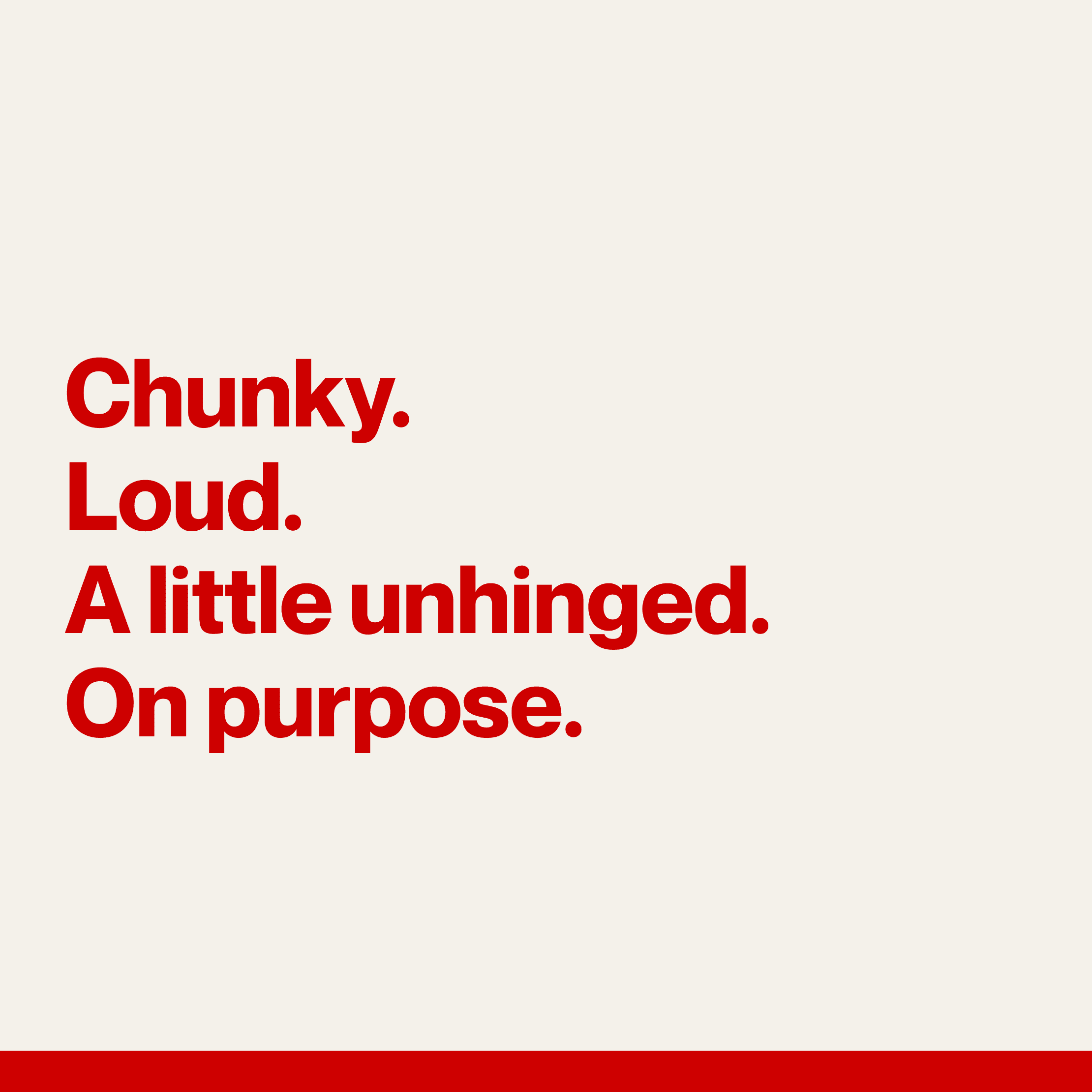 We built a brand around bold red, chunky type, and a mascot that has a life of its own.