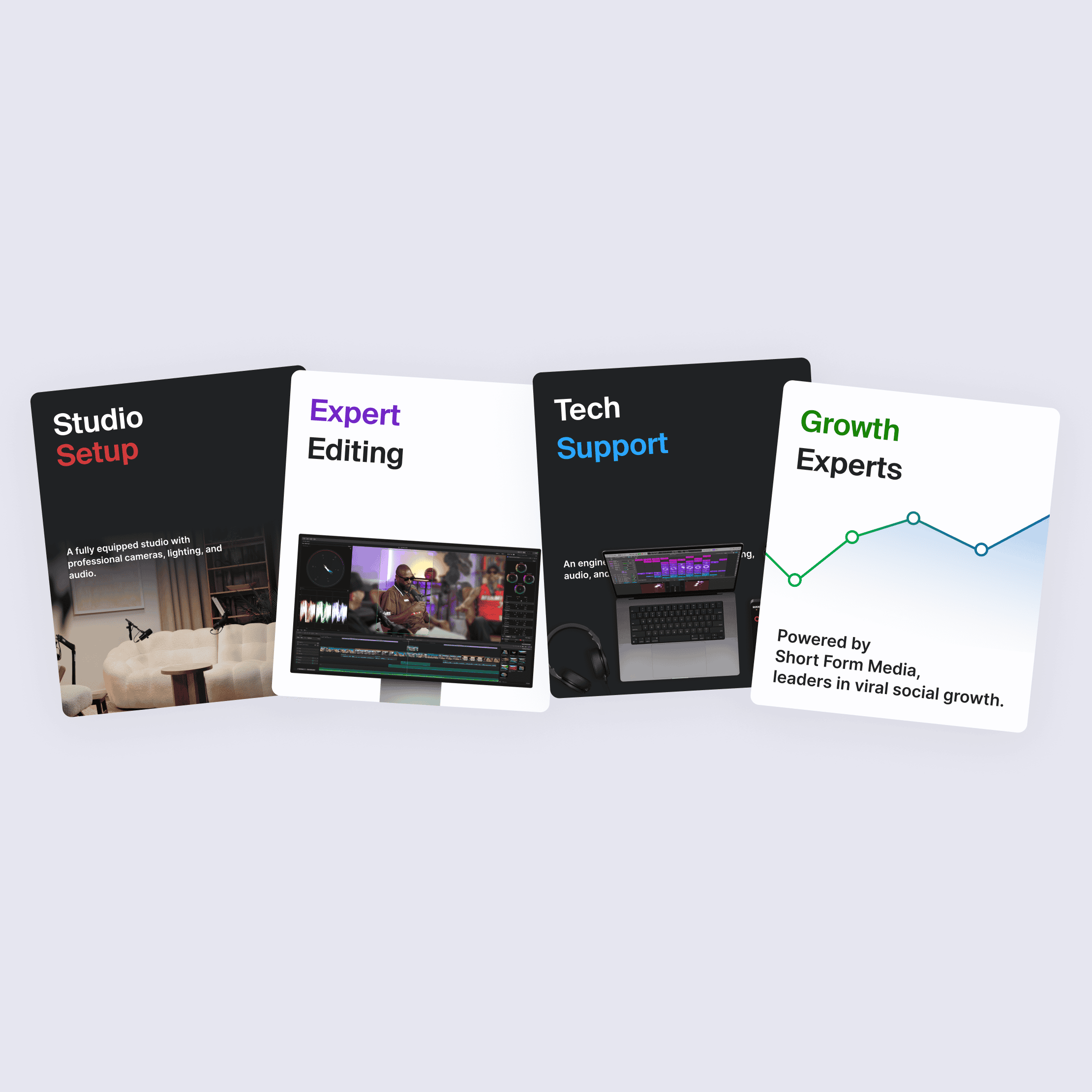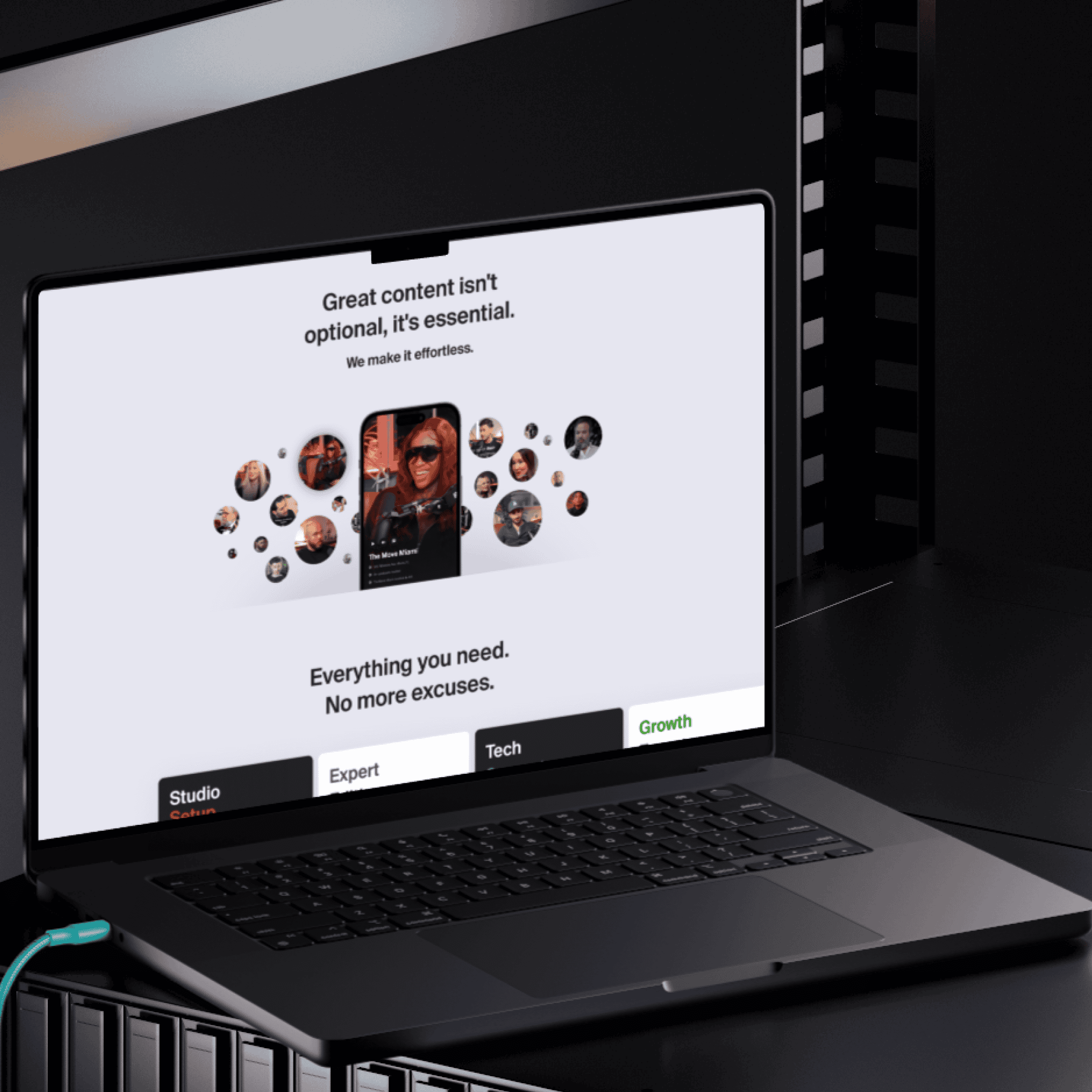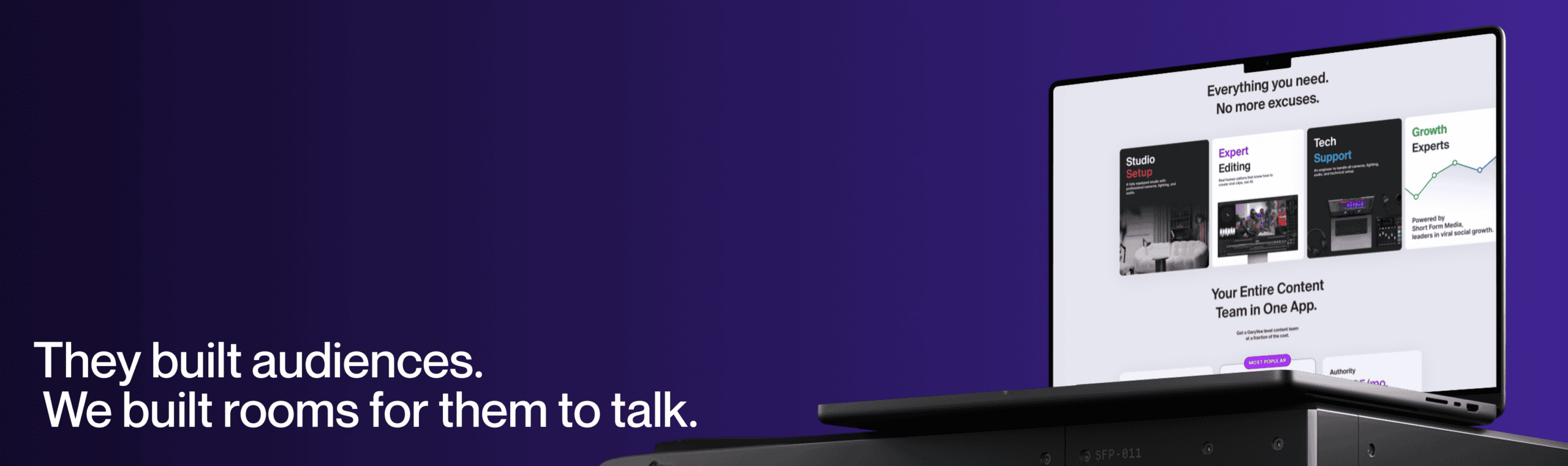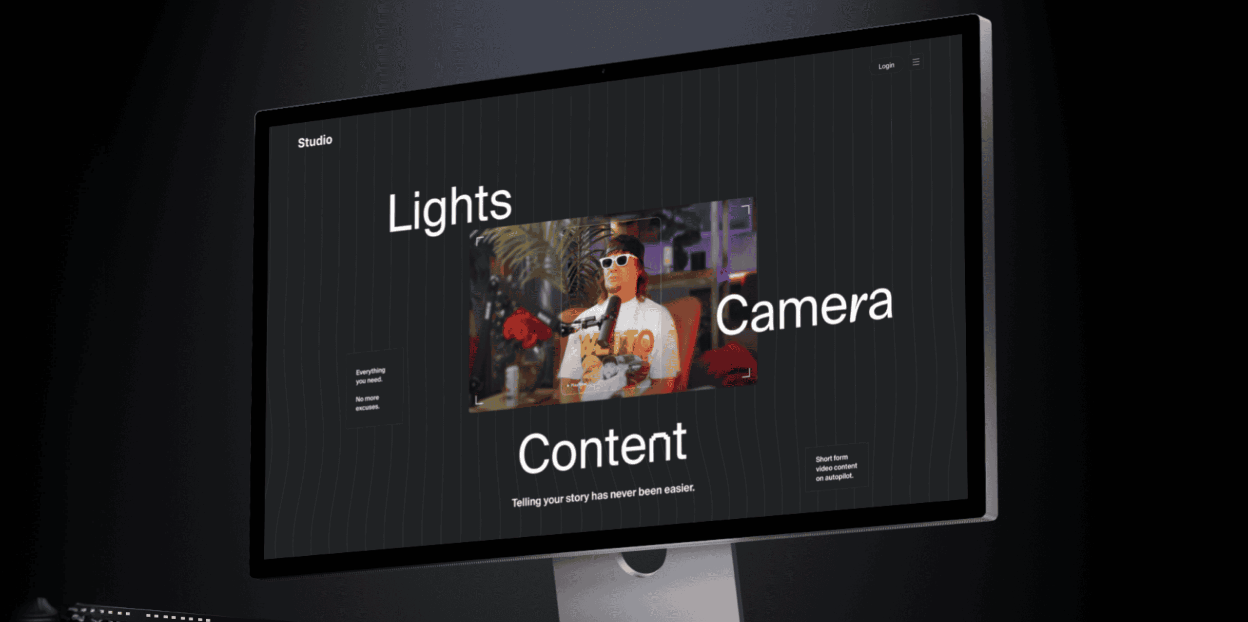 (About Project) Studio is a content creation platform that gives business owners, founders, and creators access to a fully equipped studio, professional tech support, real human editors, and social growth experts -- all in one subscription. Show up, record, and let Studio handle the rest.