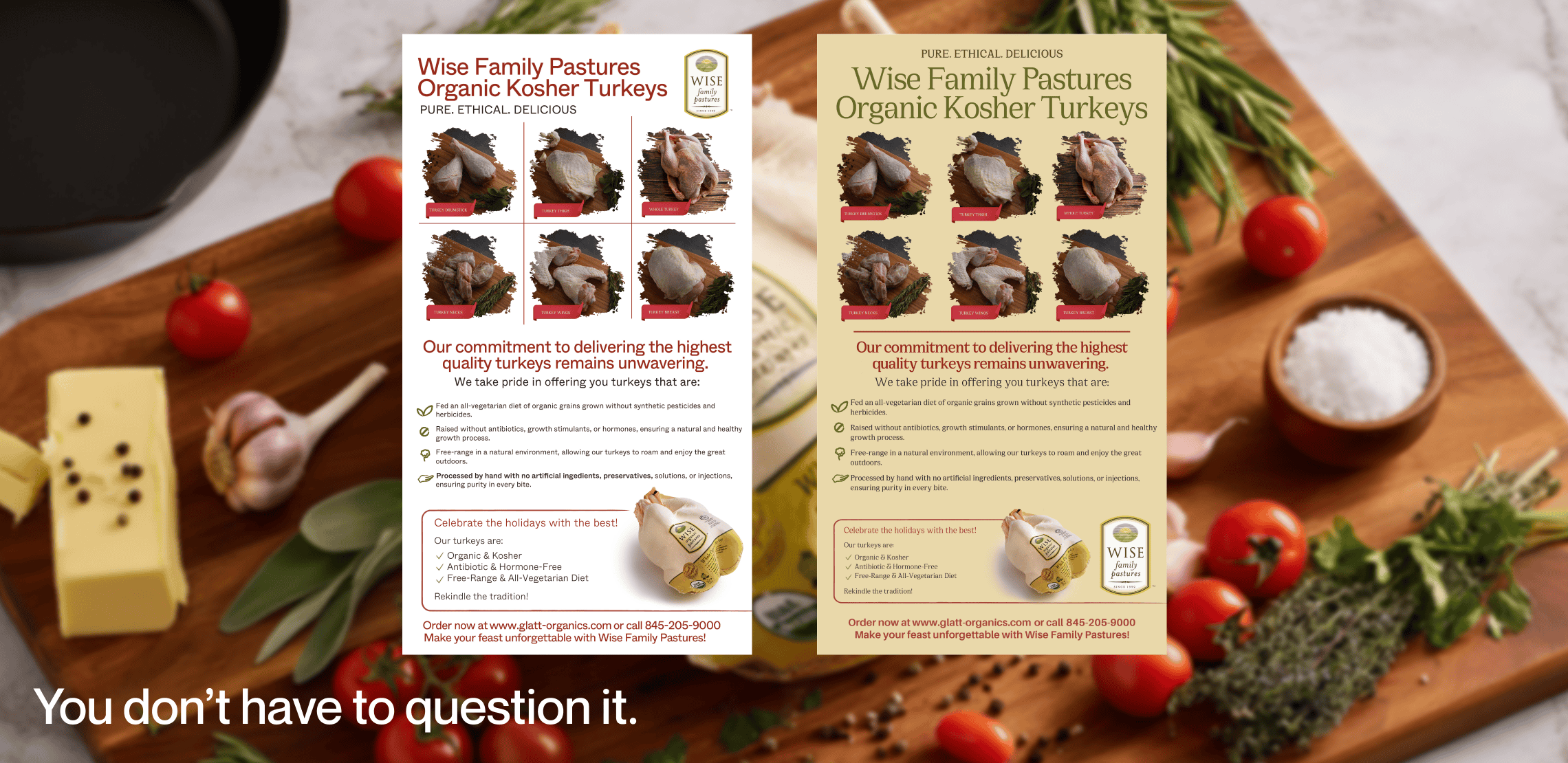 (About Project) Wise Family Pastures is a kosher organic meat and poultry brand rooted in a simple promise: the highest-quality, pasture-raised product, raised the way it should be. Founded in 1992, the brand has built a loyal following in kosher communities who care as much about what's in their food as what's on the label.